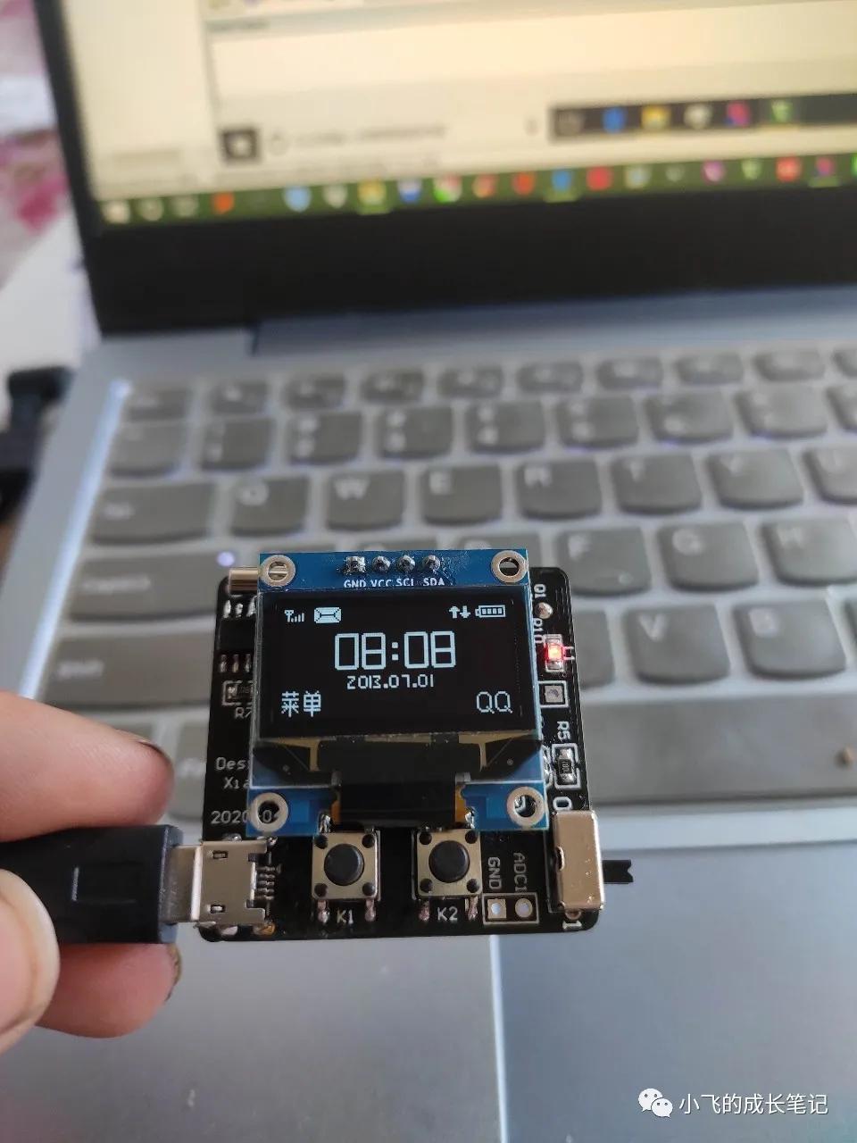 然后又依次下载了一些测试程序,结果又发现了一些问题,比如走时不太准,纽扣电池掉电太快,又想了好久才解决这些问题。走时不准是因为我的手上有静电,会使走时受到干扰;纽扣电池掉电太快,是因为有一根线连错了,然后又飞了一根线,加了两个电容,然后终于可以了,可以实现所有的功能了。这些事情说着简单,其实真的很难,那些问题都太奇怪了,网上根本找不到资料,都是一点点试出来的,太难了。然后就是漫长的软件开发过程了,这可是比硬件更难的啊。