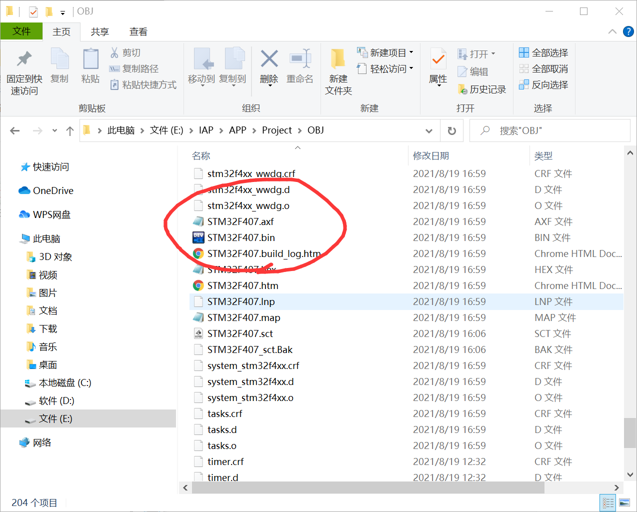 4、此时在工程文件目录下就可以找到.bin文件了: