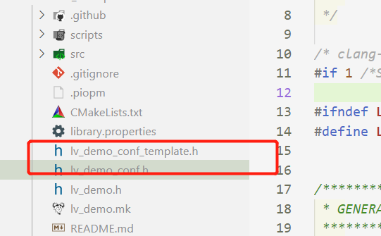 然后复制为lv_conf_template.h为lv_conf.h: