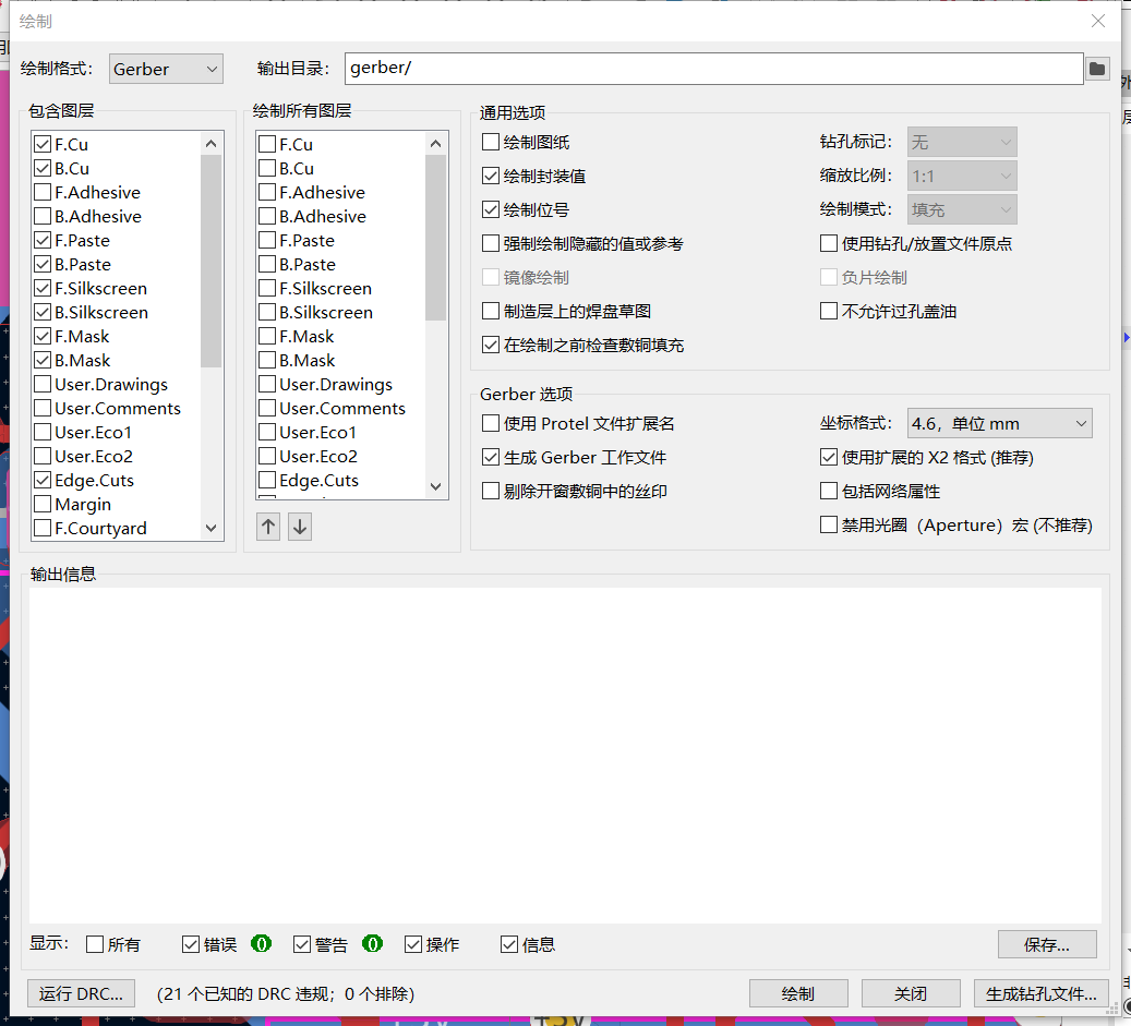 单击菜单栏【文档】 >> 【绘制】,格式选择【Gerber】,各项设置如下截图所示。
